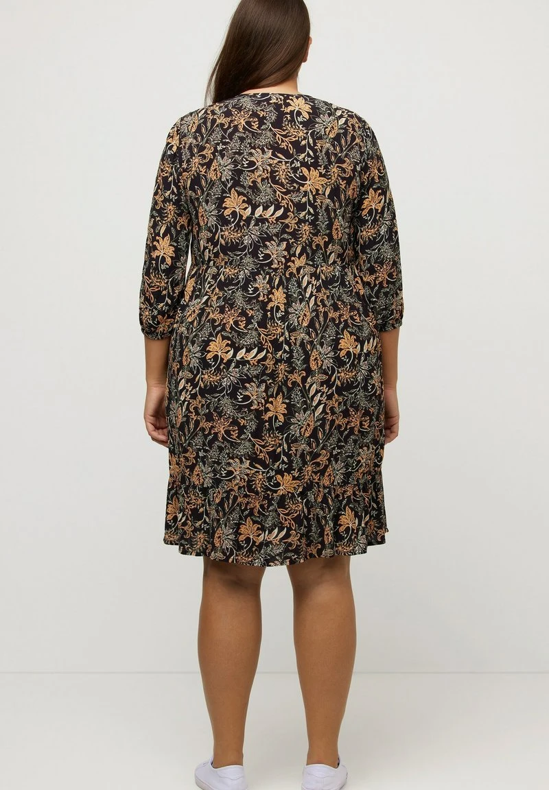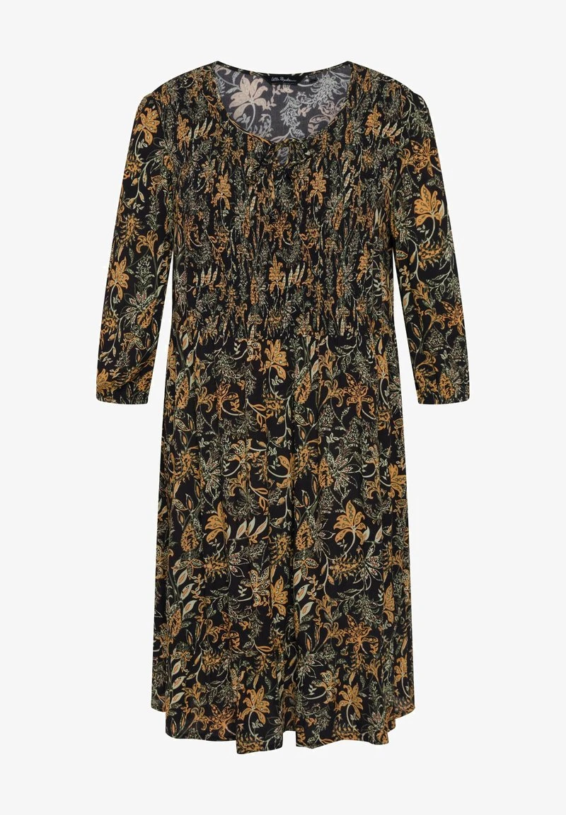 Ulla Popken TROPICAL LEAF PRINT SMOCKED – Freizeitkleid – Black