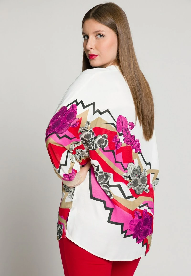 Ulla Popken LONG À MOTIF GRAPHIQUE DÉCOLLETÉ CARRÉ ET MANCHES COURT – T-Shirt Print – Bleu Marine