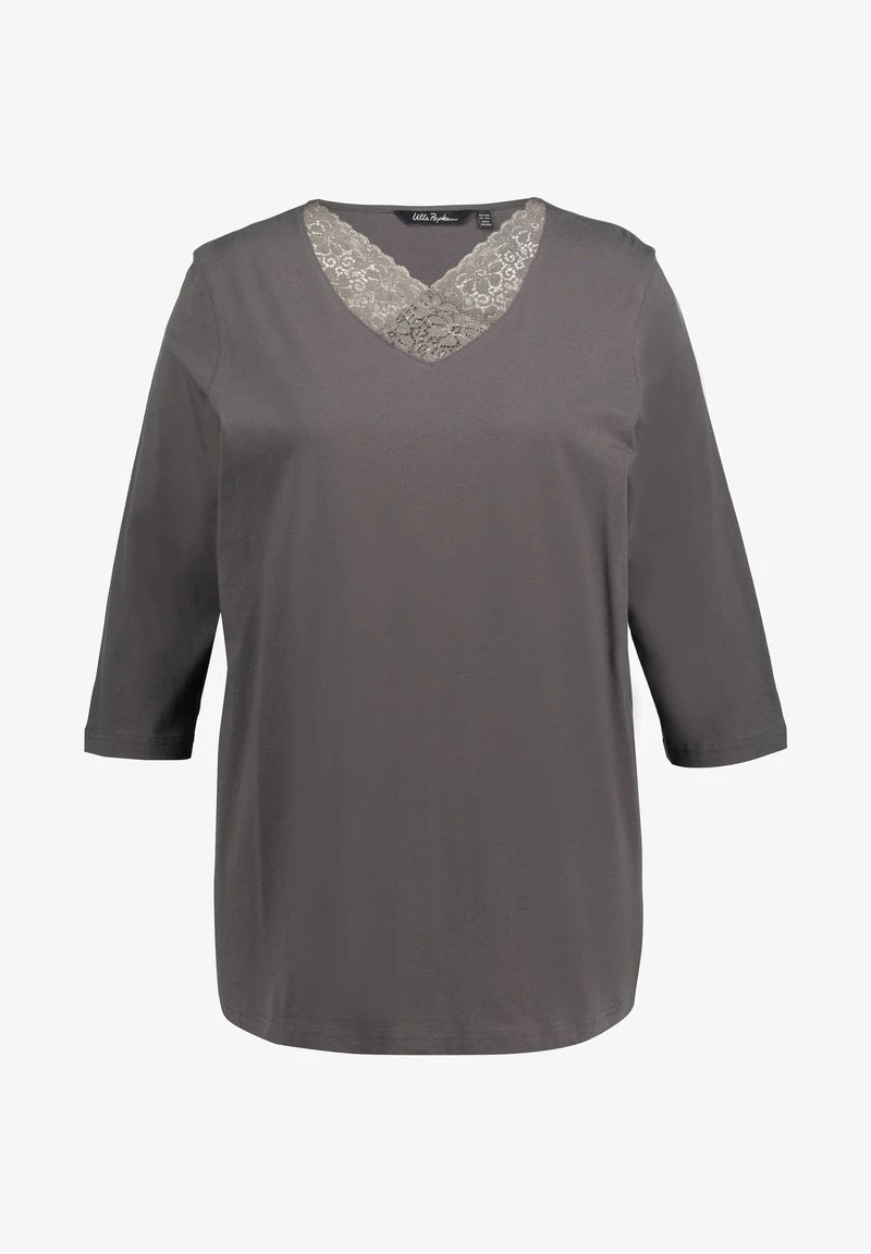 Ulla Popken V HALS 3/4 MOUWEN – Nachtwäsche Shirt – Asbruin