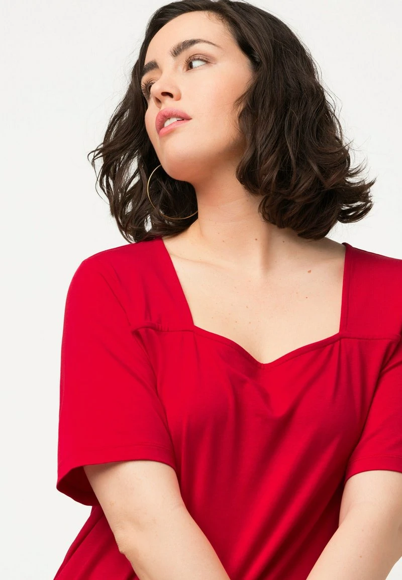 Ulla Popken ZIERNAHT, CARREE-AUSSCHNITT, HALBARM – T-Shirt Basic – Litchi