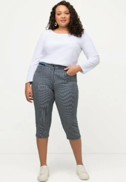 Ulla Popken BENGALINE SIENNA. JAMBE ÉTROITE ET LONGUEUR 7/8. BAS – Stoffhose – Vert Mousse Clair