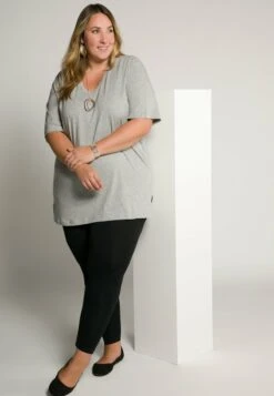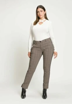 Ulla Popken BENGALINE SIENNA. JAMBE ÉTROITE ET LONGUEUR 7/8. BAS – Stoffhose – Vert Mousse Clair
