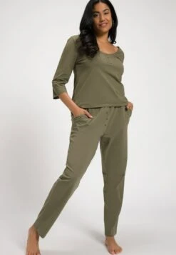 Ulla Popken SIERKNOPEN, ELASTISCHE BAND, ZAKKEN – Nachtwäsche Hose – Lodengroen
